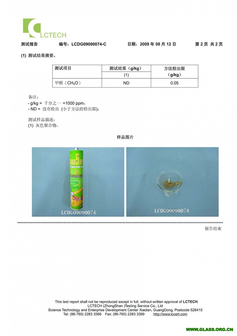 LCTECH甲醛含量測試報告