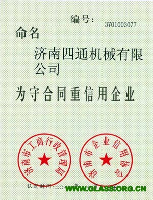 證書介紹 濟(jì)南四通機(jī)械有限公司是濟(jì)南中空玻璃設(shè)備生產(chǎn)企業(yè)中為數(shù)不多的“守合同、重信用”企業(yè) 證書圖片 |
