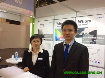 業(yè)界也有不少其他中國公司如北玻,藍(lán)迪等也均是盛裝亮相Glasstec, 其中北玻的超大板面玻璃異常搶眼。奧博泰曾為北玻配置數(shù)條在線檢測系統(tǒng)和實驗室檢測儀器,包括分光偏角Filmeasure2200,耐磨試驗機BTA-5000,光譜透反射在線測量系統(tǒng) Filmonitor6300,光譜射比在線測量系統(tǒng)Filmonitor6110等。