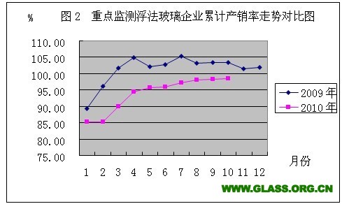 2010年1—10月份全國(guó)平板玻璃產(chǎn)銷率累計(jì)完成95.3%。