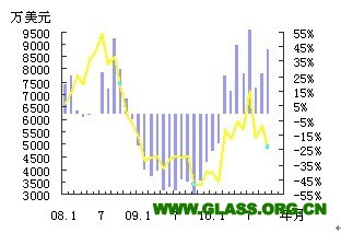 1.1%,出口金額5.27億美元,同比增長(zhǎng)19.8%;建筑與技術(shù)玻璃出口金額25.37億美元,同比增長(zhǎng)