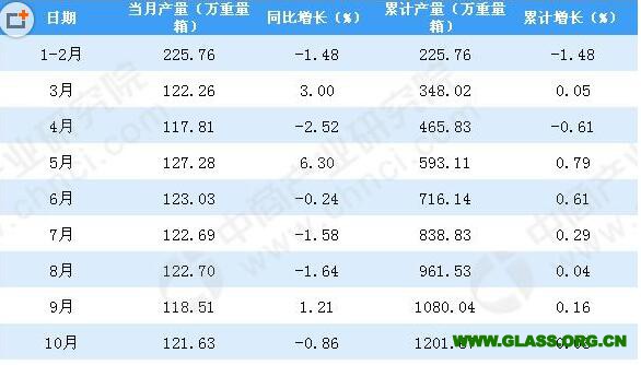 2018年1-11月重慶市平板玻璃產(chǎn)量及增長情況