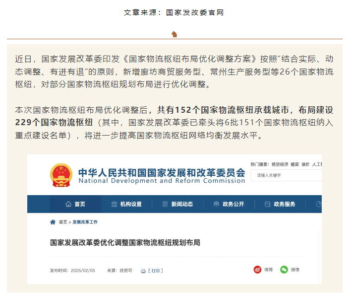 新增26個!國家發(fā)改委優(yōu)化調(diào)整國家物流樞紐規(guī)劃布局(附229個國家物流樞紐名單)