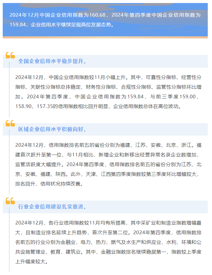 2024年12月及第四季度中國企業(yè)信用水平繼續(xù)呈高位發(fā)展態(tài)勢(附一圖讀懂)