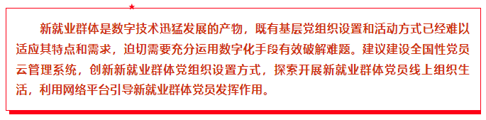 習(xí)近平總書記強(qiáng)調(diào),“突出抓好新經(jīng)濟(jì)組織、新社會(huì)組織、新就業(yè)群體黨的建設(shè),不斷增強(qiáng)黨在新興領(lǐng)域的號(hào)召力凝聚力影響力”“善于運(yùn)用互聯(lián)網(wǎng)技術(shù)和信息化手段開展黨建工作,努力實(shí)現(xiàn)黨的組織和黨的工作線下線上全覆蓋”。抓好新興領(lǐng)域黨建工作,要堅(jiān)持以習(xí)近平新時(shí)代中國(guó)特色社會(huì)主義思想為指導(dǎo),深入貫徹落實(shí)黨的二十屆三中全會(huì)精神,用數(shù)字化破解新就業(yè)群體黨建工作難題。 網(wǎng)約配送員、快遞員、網(wǎng)約車司機(jī)、貨車司機(jī)等新就業(yè)群體服務(wù)各行各業(yè),與廣大人民群眾生產(chǎn)生活密切相關(guān)。經(jīng)濟(jì)社會(huì)發(fā)展到哪里,黨建工作就要跟進(jìn)到哪里。當(dāng)前,新就業(yè)群體黨建工作的難點(diǎn)在于黨員與黨組織難以有效聯(lián)系,黨組織難以有效建立,黨組織活動(dòng)難以有效開展,黨員作用難以有效發(fā)揮。 新就業(yè)群體是數(shù)字技術(shù)迅猛發(fā)展的產(chǎn)物,既有基層黨組織設(shè)置和活動(dòng)方式已經(jīng)難以適應(yīng)其特點(diǎn)和需求,迫切需要充分運(yùn)用數(shù)字化手段有效破解難題。一是建設(shè)全國(guó)性黨員云管理系統(tǒng)。推行黨員檔案數(shù)字化管理,方便流動(dòng)黨員組織關(guān)系管理、轉(zhuǎn)接、認(rèn)定。推廣新就業(yè)群體黨員“賦碼管理”,利用數(shù)字化手段實(shí)現(xiàn)對(duì)新就業(yè)群體黨員表現(xiàn)和黨組織工作考核評(píng)價(jià)。二是創(chuàng)新新就業(yè)群體黨組織設(shè)置方式。根據(jù)就近就便原則,分類建立黨組織,將新就業(yè)群體黨員有效納入管理。三是探索開展新就業(yè)群體黨員線上組織生活。利用數(shù)字化手段搭建黨組織與流動(dòng)黨員的“線上橋梁”,使流動(dòng)黨員無論身處何地,都能及時(shí)方便參加組織生活,接受教育、管理、監(jiān)督和服務(wù)。四是利用網(wǎng)絡(luò)平臺(tái)引導(dǎo)新就業(yè)群體黨員發(fā)揮作用。建立健全網(wǎng)上積分、獎(jiǎng)勵(lì)表彰制度,引導(dǎo)新就業(yè)群體黨員發(fā)揮先鋒模范作用,利用網(wǎng)絡(luò)平臺(tái)宣傳先進(jìn)模范事跡。 運(yùn)用數(shù)字化手段推進(jìn)新就業(yè)群體黨建工作,要堅(jiān)持守正創(chuàng)新,既要“組織起來”又要“運(yùn)轉(zhuǎn)起來”,應(yīng)注意處理好4方面的關(guān)系:在領(lǐng)導(dǎo)體制上,建好用好新興領(lǐng)域黨建工作協(xié)調(diào)機(jī)制,合理劃分職責(zé)任務(wù),妥善處理組織部門、社會(huì)工作部門與相關(guān)行業(yè)管理部門及街道、社區(qū)的責(zé)任關(guān)系,構(gòu)建條塊結(jié)合、上下聯(lián)動(dòng)、有效協(xié)同的黨建工作體系。在組織形式上,平臺(tái)企業(yè)總部與分支機(jī)構(gòu)、合作伙伴等要統(tǒng)籌安排,創(chuàng)建靈活多樣的組織類型,把黨支部建在產(chǎn)業(yè)鏈、供應(yīng)鏈上,實(shí)現(xiàn)對(duì)流動(dòng)黨員的組織有形覆蓋和工作有效覆蓋。在工作方式上,統(tǒng)籌優(yōu)化新興領(lǐng)域數(shù)字化黨建資源,流入地與流出地黨組織加強(qiáng)協(xié)調(diào)配合,做好流動(dòng)黨員管理服務(wù)工作。在功能發(fā)揮上,強(qiáng)化政治功能和組織功能,寓教育于傾聽中,寓引領(lǐng)于服務(wù)中,研究完善群眾利益協(xié)調(diào)機(jī)制,在回應(yīng)新就業(yè)群體合理訴求、解決他們的急難愁盼問題中,發(fā)揮黨的政治優(yōu)勢(shì)和組織優(yōu)勢(shì)。