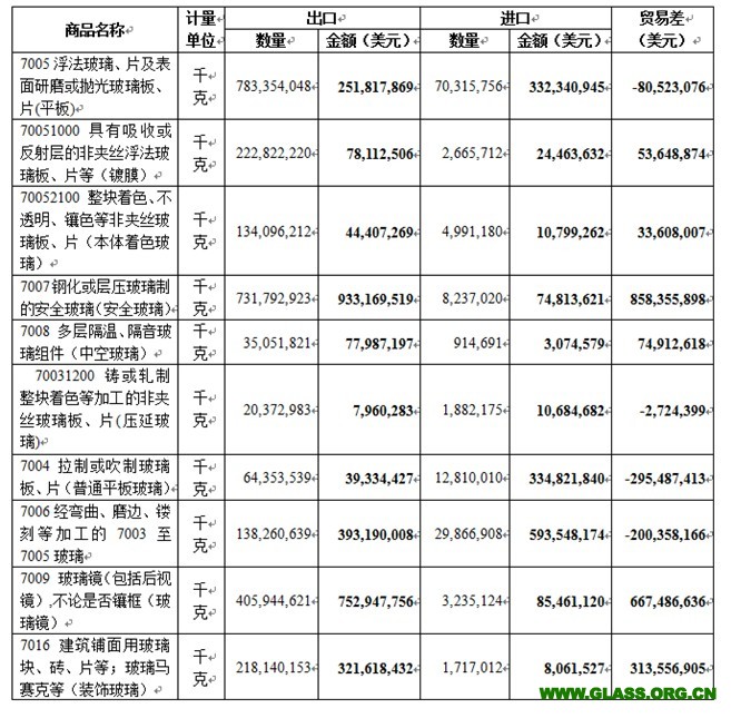 • 2014年1~12月份玻璃進出口統(tǒng)計