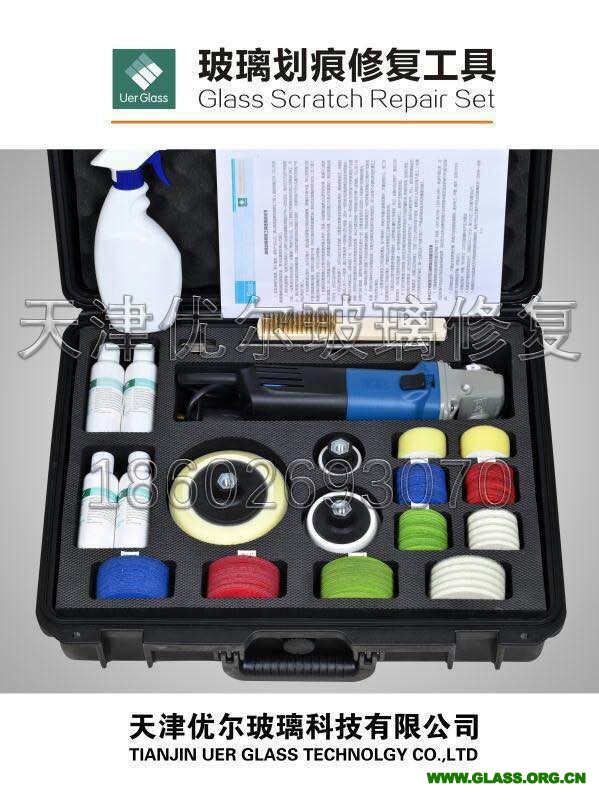 天津優(yōu)爾玻璃劃痕修復套裝的產(chǎn)修復原理是:先研磨、后拋光。具體解釋就是:對于比較嚴重的劃痕,我們采用先用顆粒度比較大的(35μ)研磨片進行研磨,先將劃痕研磨掉,然后再使用細的研磨片(20μ、10μ、5μ)依次進行精磨,然后再用純羊毛拋光盤和拋光膏進行拋光,把修復區(qū)域拋亮后,玻璃劃痕修復結束。局部的、小范圍的修復可以節(jié)約成本和時間,但修復效果不佳;將修復區(qū)域展開,可以獲得良好的修復效果,但會增加修復成本和時間。請根據(jù)實際的理想目標選擇合適的修復方法。