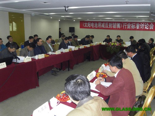 《太陽電池用減反射玻璃》行業(yè)標(biāo)準(zhǔn)討論會于 2011年1月 8日在廣東深圳召開,本次會議由中國建筑玻璃與工業(yè)玻璃協(xié)會組織,中國建材國際工程集團(tuán)有限公司協(xié)辦。協(xié)會領(lǐng)導(dǎo)、光伏玻璃專業(yè)委員會領(lǐng)導(dǎo)成員,以及來自光伏玻璃生產(chǎn)、研究、加工、使用、檢測、設(shè)備、材料等單位的各界專家共40人參加了本次會議。
