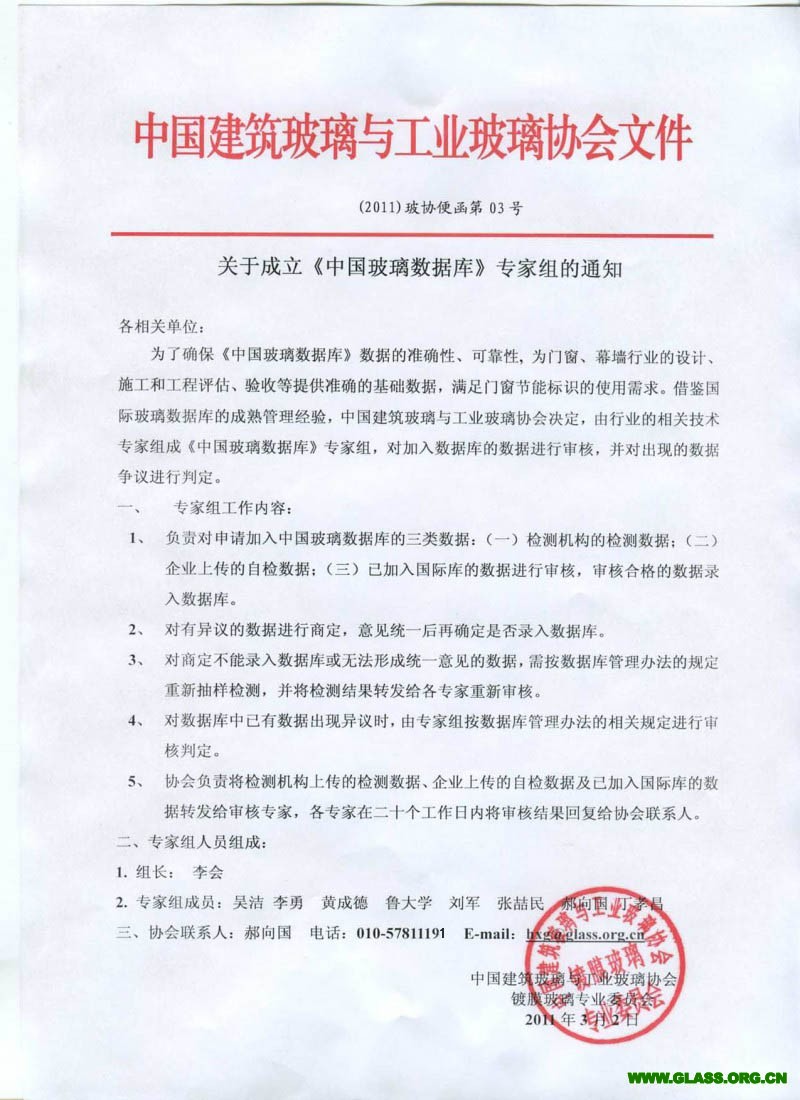 關(guān)于成立《中國(guó)玻璃數(shù)據(jù)庫(kù)》專家組的通知