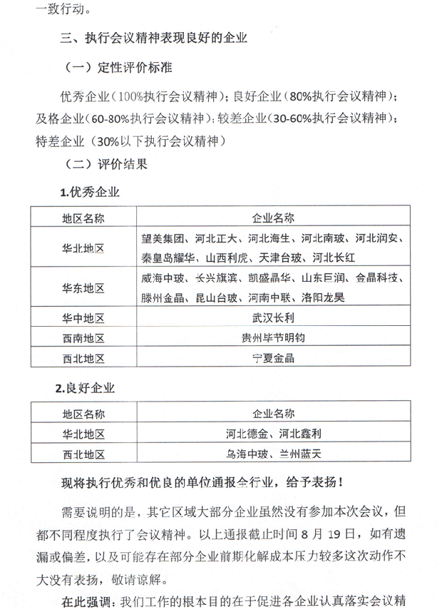 平板玻璃企業(yè)執(zhí)行8.12淄博會議精神第一周情況簡報